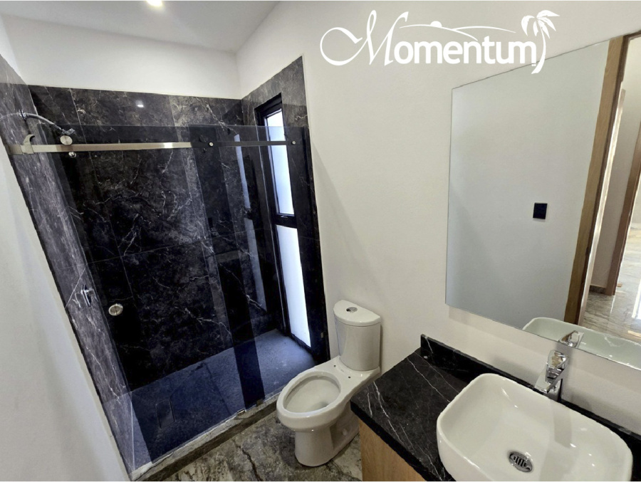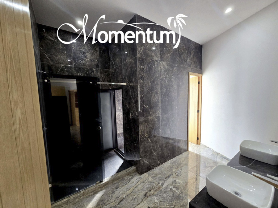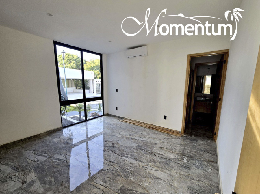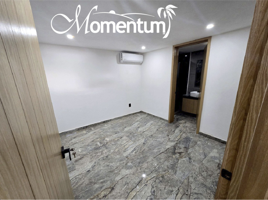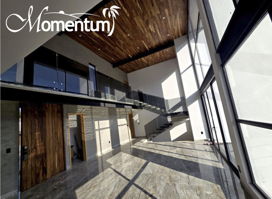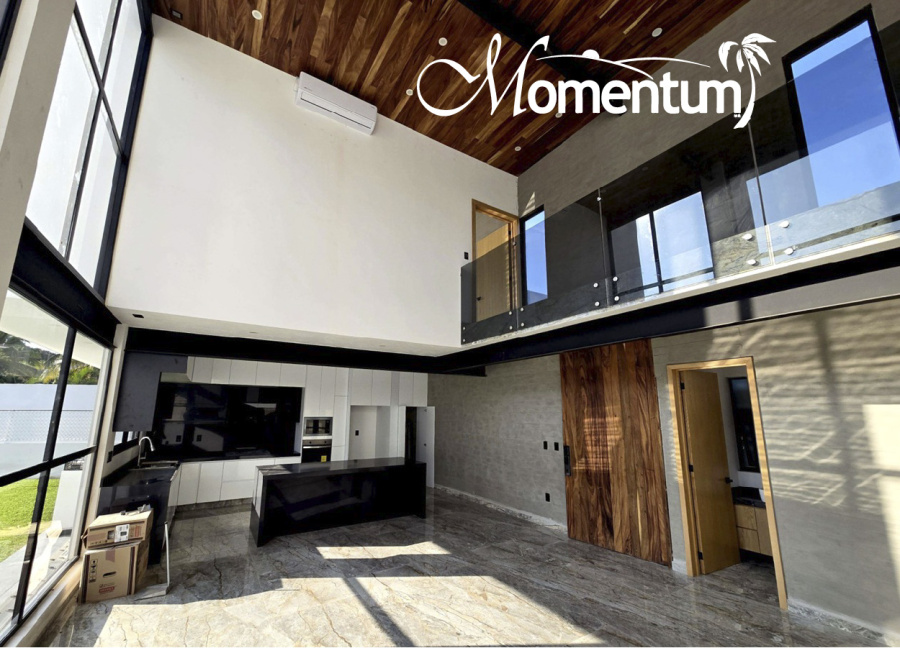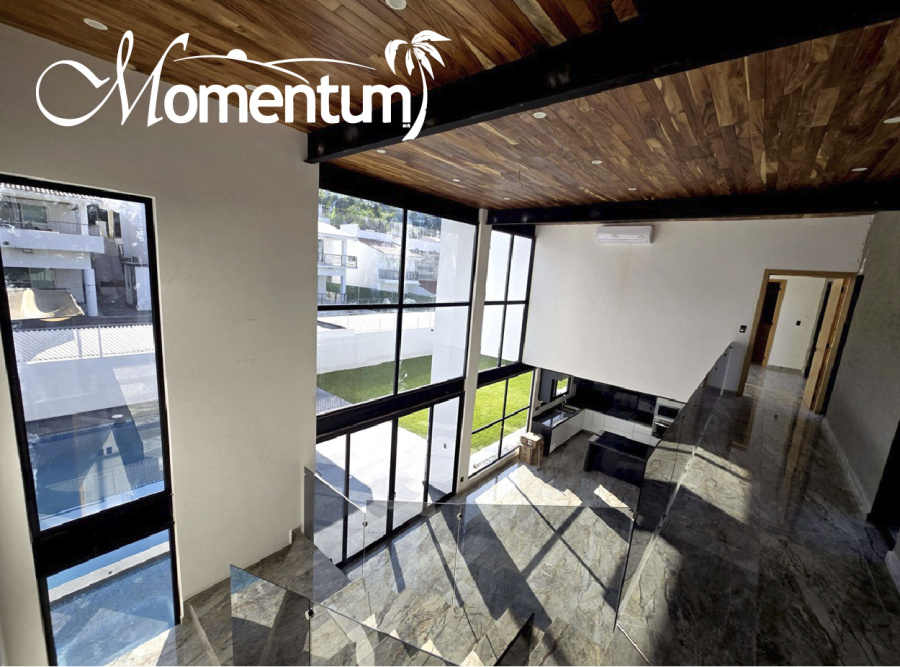 Construida en dos niveles, con excelente espacio y acabados de lujo, aires acondicionados y doble altura en sala-comedor.